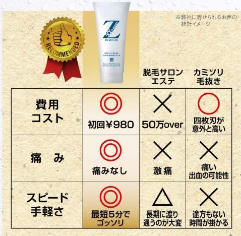 「Zリムーバー」なら「毛質分解」という新しい技術で脱毛するから「痛くない・安い・すぐできる」の良い所どり♪