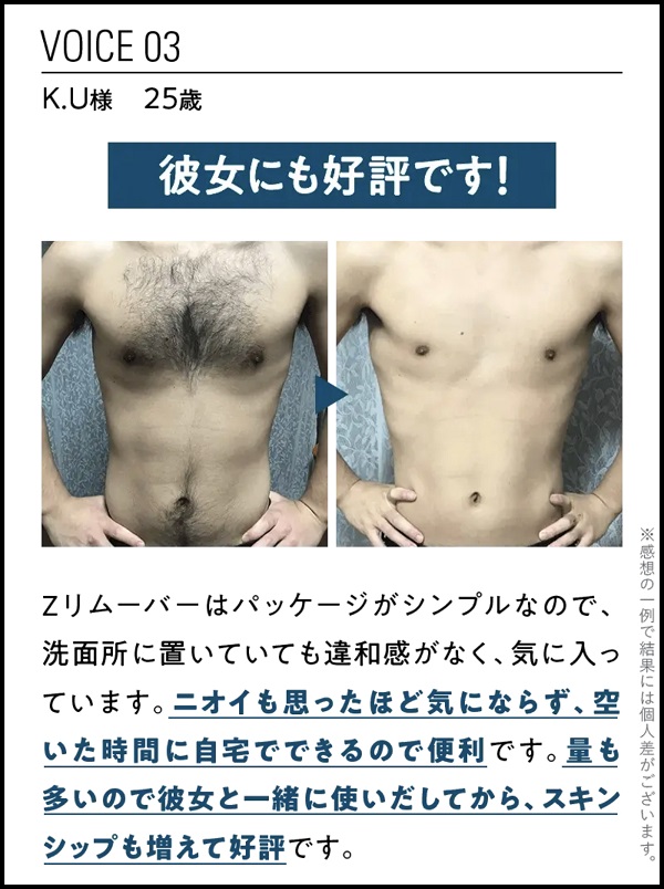Zリムーバーで剛毛をゴッソリ剃っておくと、デートの時も安心して過ごせます♪