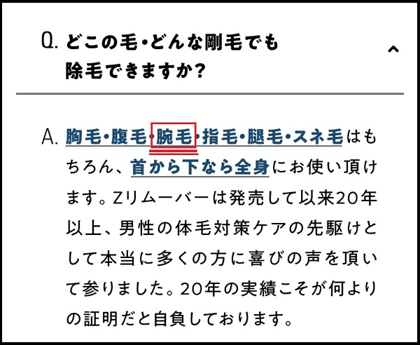 Zリムーバーは男性に特化して開発されているから、首から下の毛なら問題なく剃れます♪